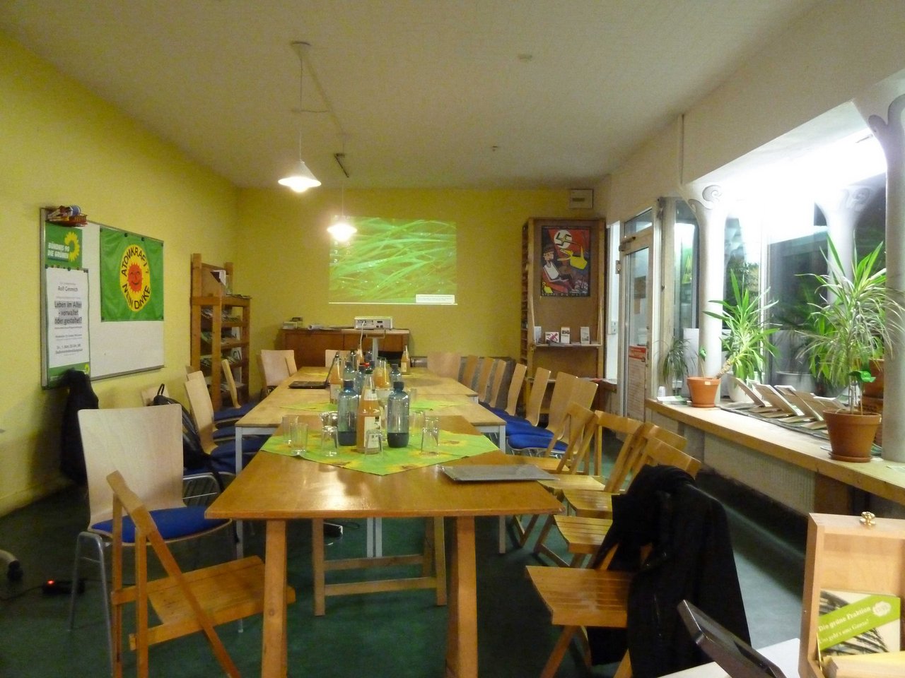 Hier gibt es Informationsmaterial aller Art zur Partei und zu uns nahe stehenden Organisationen und Gruppierungen. Darüber hinaus dient die Geschäftsstelle als Räumlichkeit für die Treffen grüner Gremien wie z.B. Vorstand, Fraktionen, Arbeitskreise und Mitgliederversammlungen.
