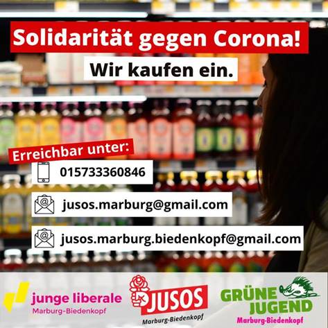 Wenn Ihr nicht zur Risikogruppe gehört und noch helfen wollt, dann meldet euch gerne unter gruenejugend.marburg-biedenkopf@gmx.de