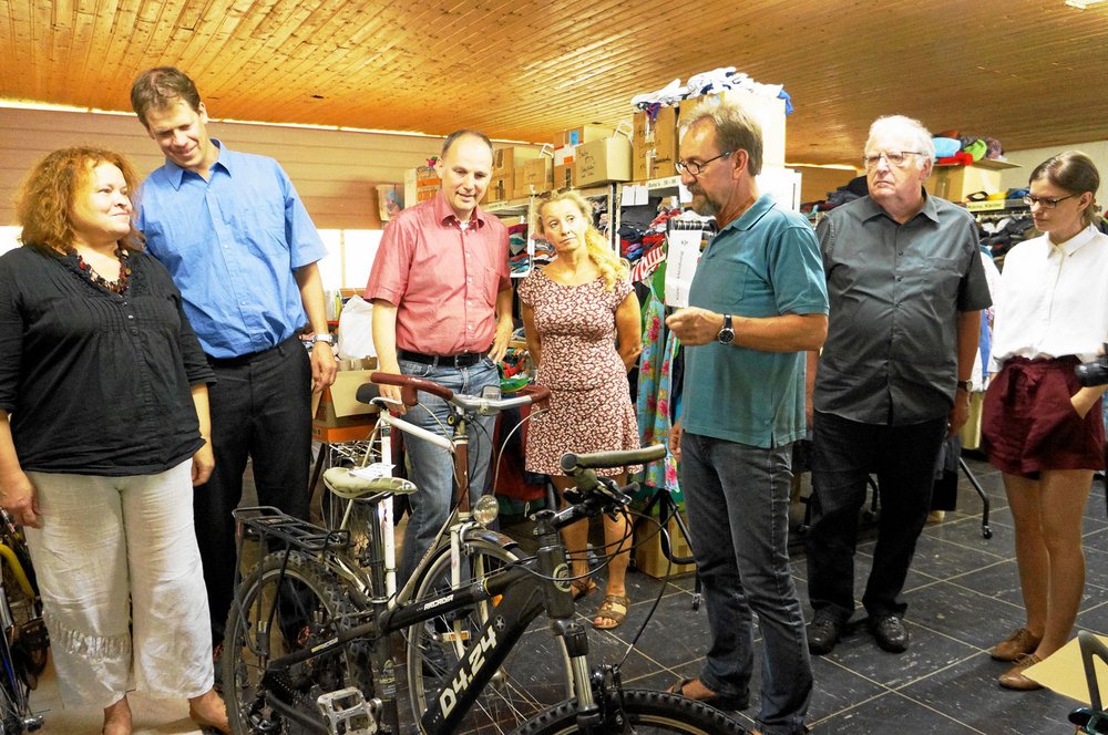In der Kleiderkammer bekam Wolfgang Strengmann-Kuhn einen ersten Eindruck von der praktischen Arbeit vor Ort. Nach wie vor bringen Cölber Bürger Kleidung, Fahrräder und Möbel vorbei, so dass die Flüchtlinge gut versorgt werden können. Die Idee ist in Zukunft die Kleiderkammer als Secondhand-Laden für Leute mit geringem Einkommen weiterzuführen.